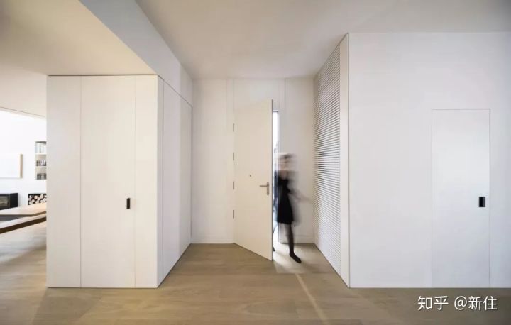 其實就是為了整體的協(xié)調(diào),遮蓋玄關(guān)很小的一個電箱,花了大價錢把整面墻鋪上裝飾板,可謂是把極簡做到了極奢。