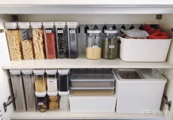 廚房柜內(nèi)整潔,也是需要依賴一些收納工具。比如最典型的就是谷物干貨的收納,以前大家都喜歡直接用塑料袋收納。慢慢地才發(fā)現(xiàn),不僅看起來亂,還容易霉。