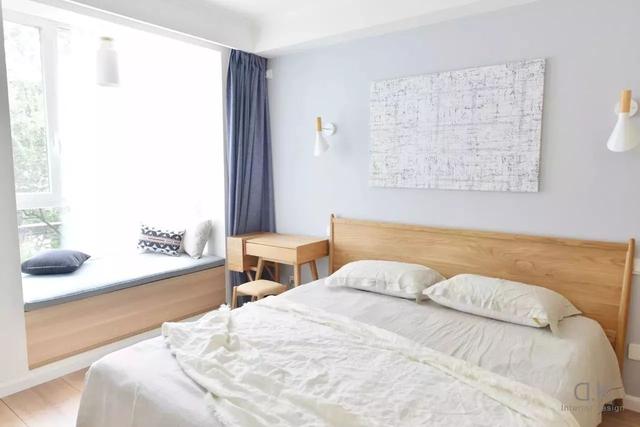臥室面積有限,直接把梳妝臺(tái)做到飄窗;